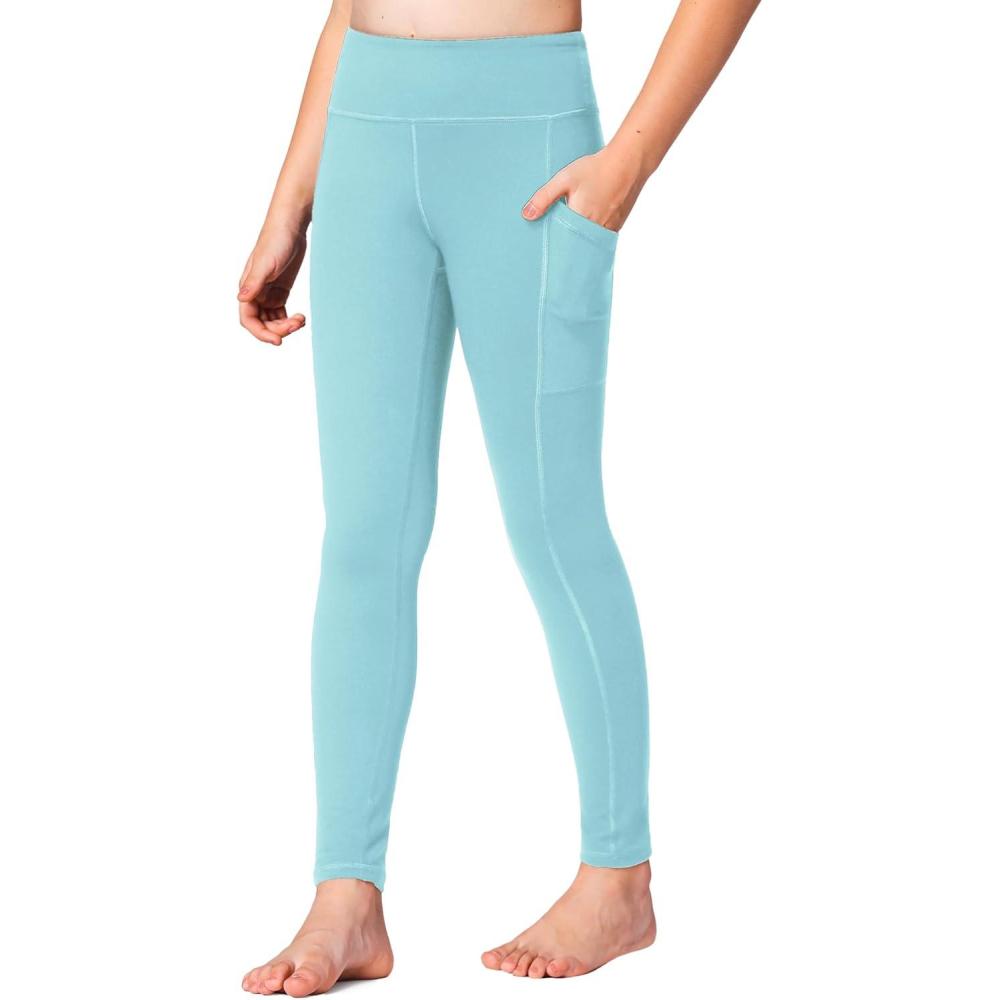 Stelle Girls’ Athletic Leggings Kids Dance Running Yoga Pants Workout Active Dance Tights with Pockets(Arctic Blue)