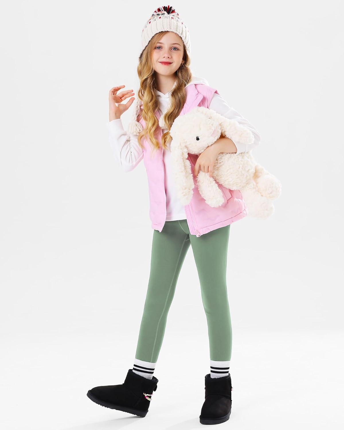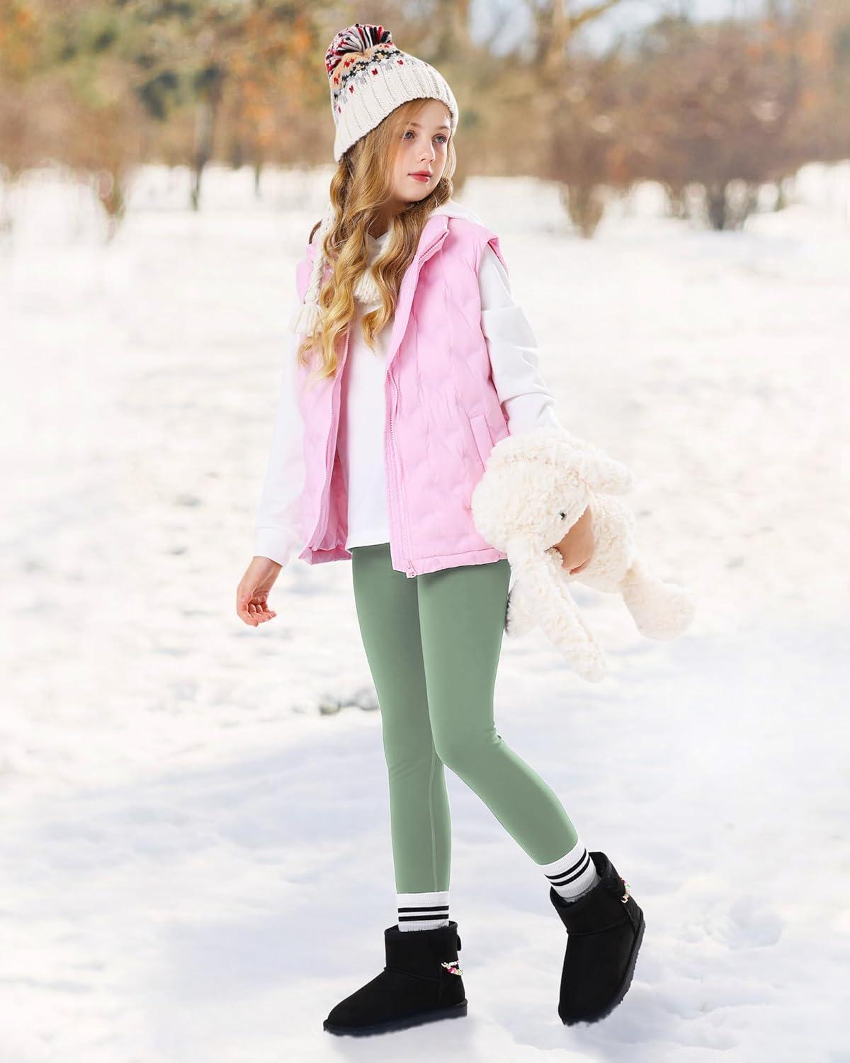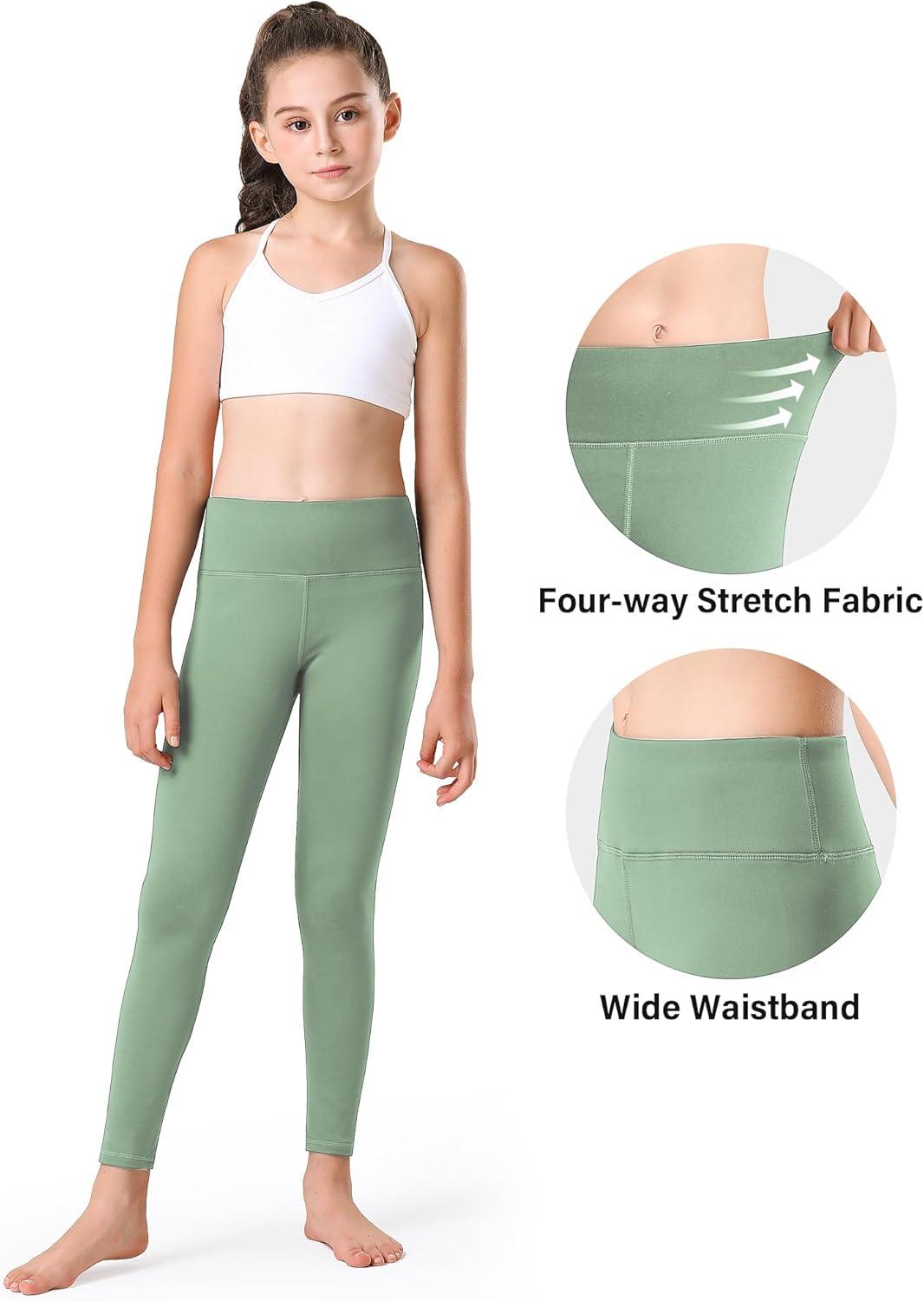 Stelle Girl’s Fleece Lined Leggings Youth High Waist Warm Winter Athletic Yoga Pants with Hidden Pocket(Jade Green)