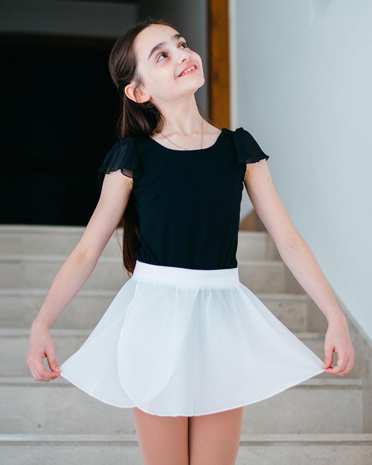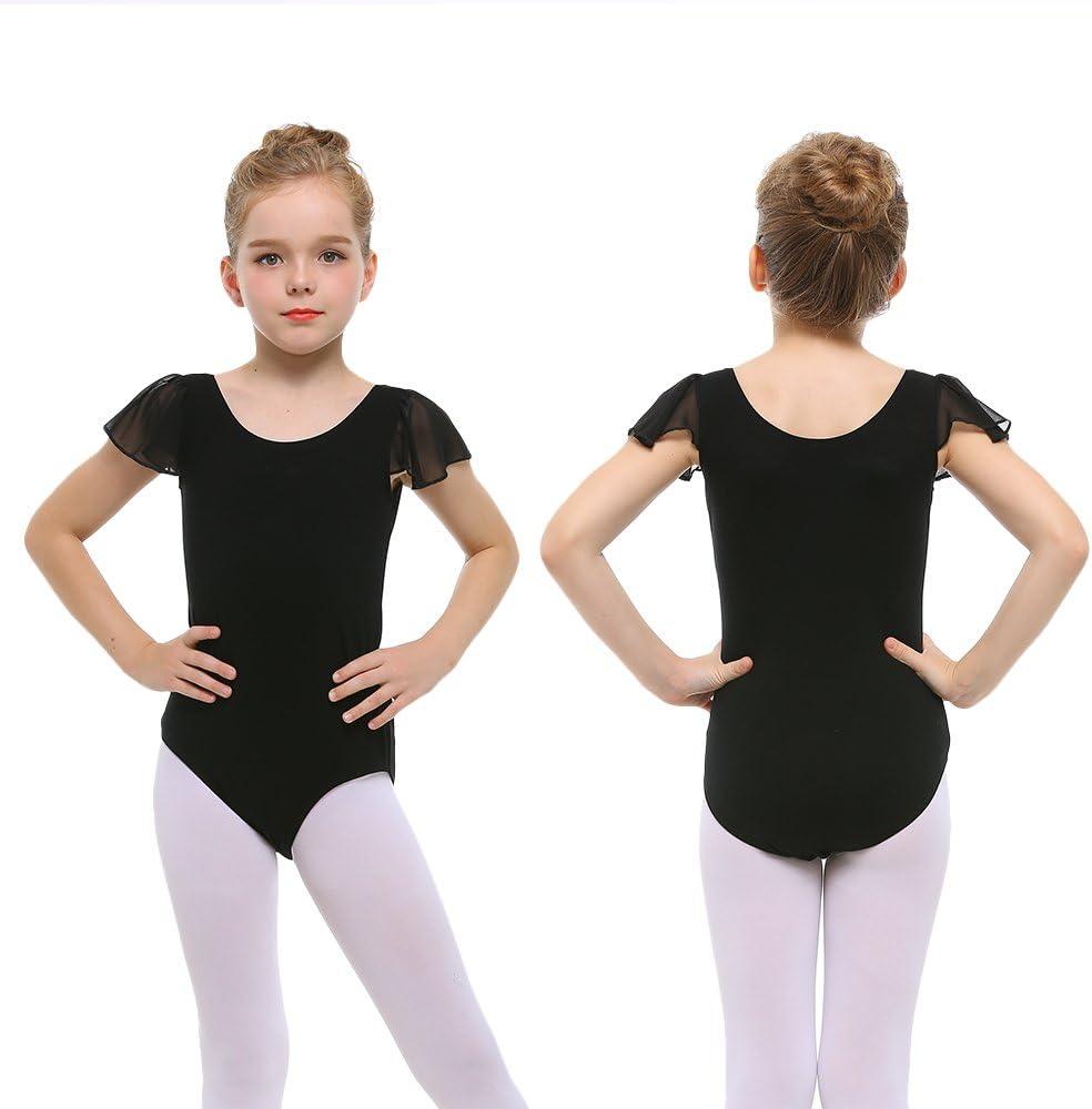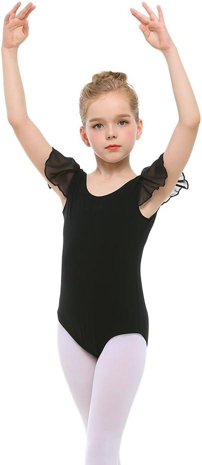 Stelle Girls Leotards Black Ballet Dance Leotards Ruffle Short Sleeve Gymnastics Outfits(Toddler/Little Kid/Big Kid)(Black)