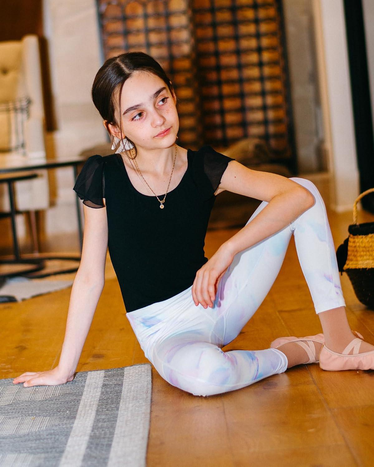 Stelle Girls Leotards Black Ballet Dance Leotards Ruffle Short Sleeve Gymnastics Outfits(Toddler/Little Kid/Big Kid)(Ballet Pink)