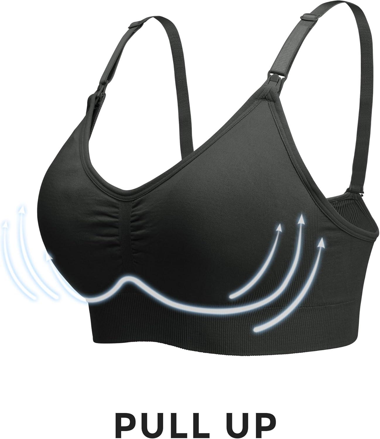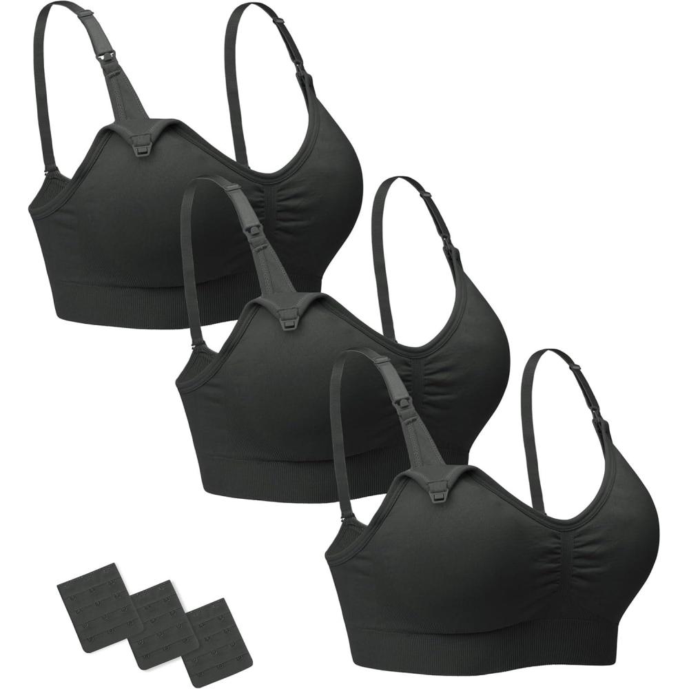 Stelle Nursing Bras Maternity Bra for Breastfeeding Pregnancy Wireless Bralette with Pads, Extenders & Clips(3 Pack Black)