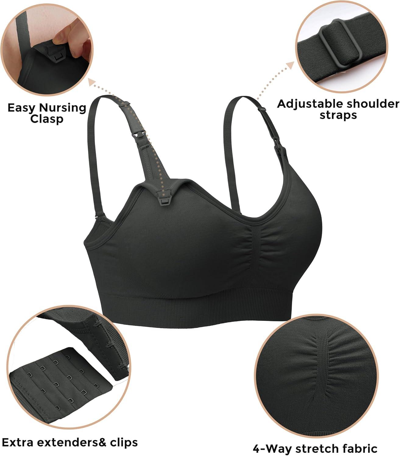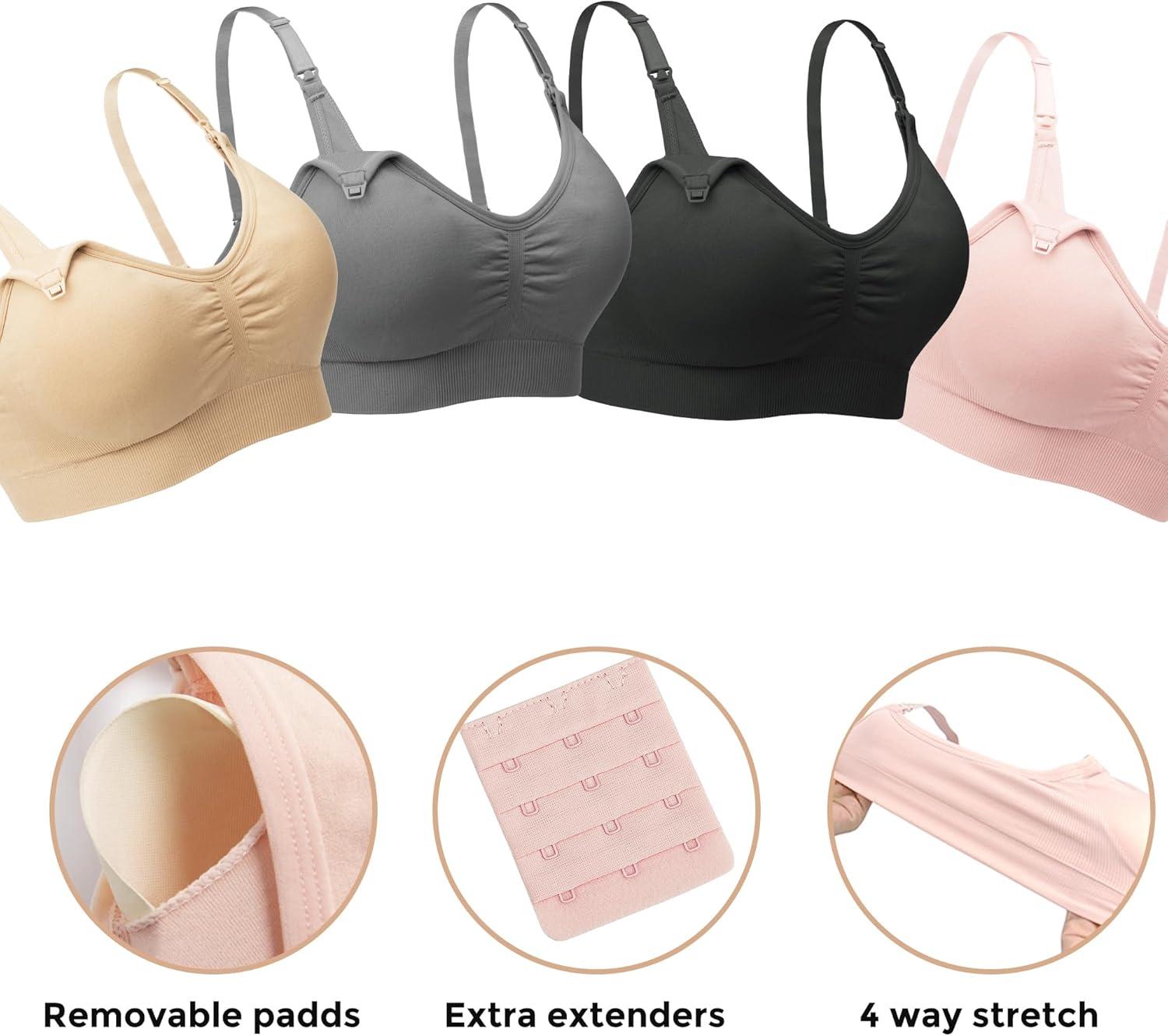 Stelle Nursing Bras Maternity Bra for Breastfeeding Pregnancy Wireless Bralette with Pads, Extenders & Clips(Black+beige+rose Pink)