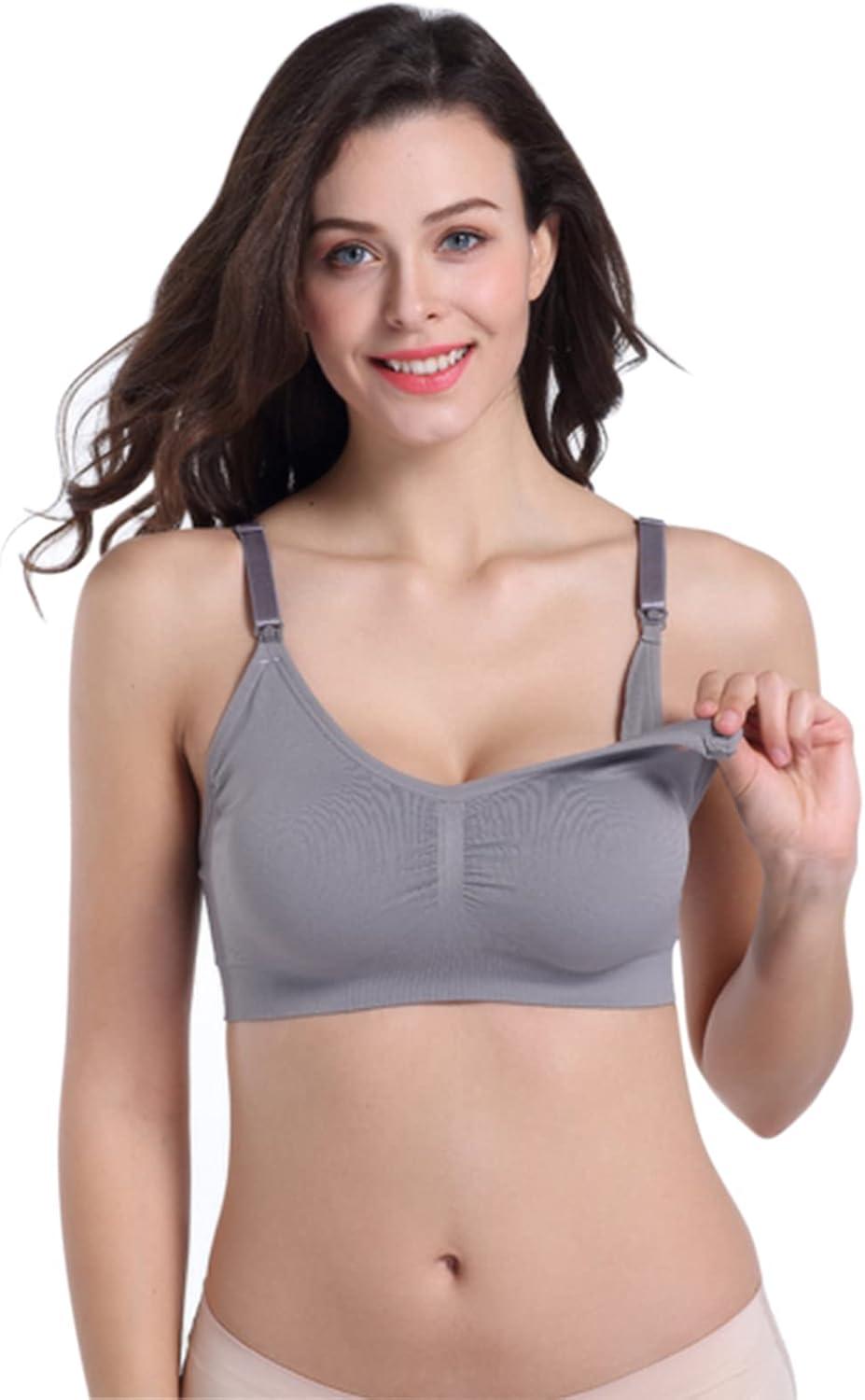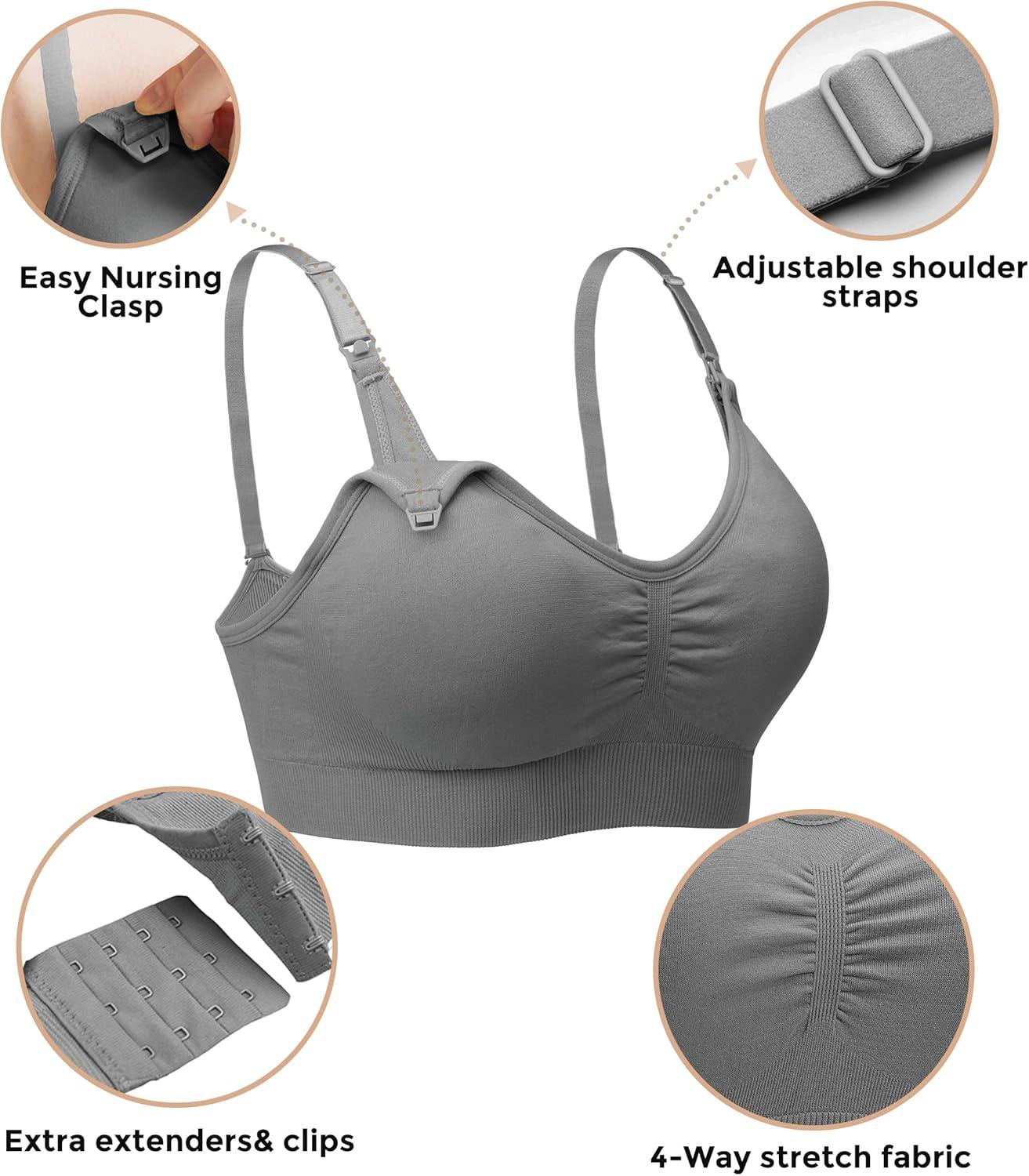 Stelle Nursing Bras Maternity Bra for Breastfeeding Pregnancy Wireless Bralette with Pads, Extenders & Clips(Gray+beige)