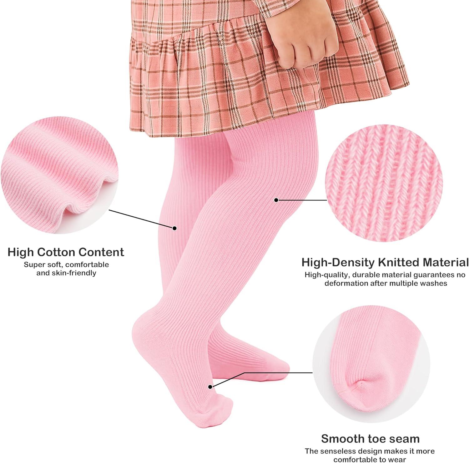 Stelle Toddler Girls Tights Baby Cable Knit Thick Stockings Cotton Winter Warm Leggings Pantyhose 1/2/3 Pack(1-pink)