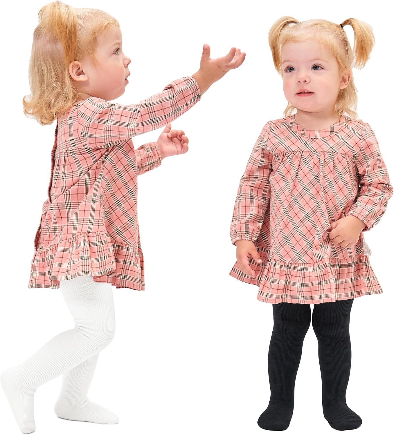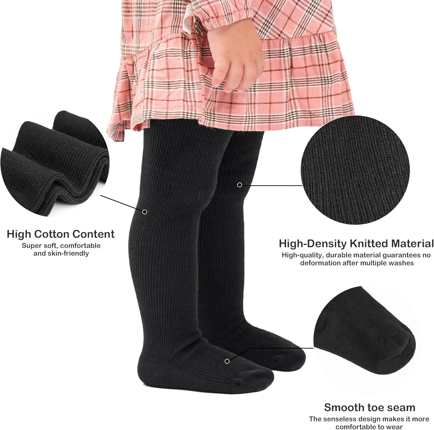Stelle Toddler Girls Tights Baby Cable Knit Thick Stockings Cotton Winter Warm Leggings Pantyhose 1/2/3 Pack(Black+white+pink)