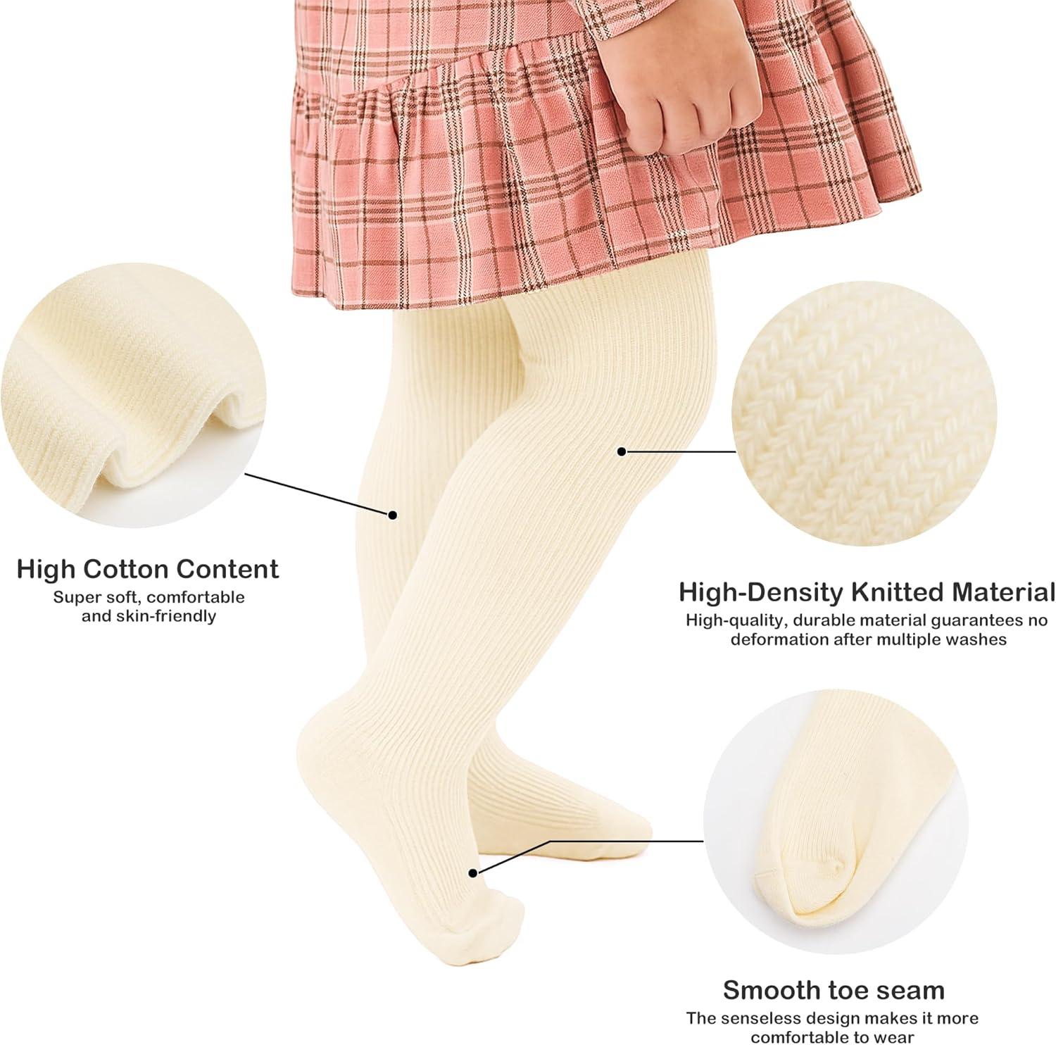 Stelle Toddler Girls Tights Baby Cable Knit Thick Stockings Cotton Winter Warm Leggings Pantyhose 1/2/3 Pack(Black+white+pink)