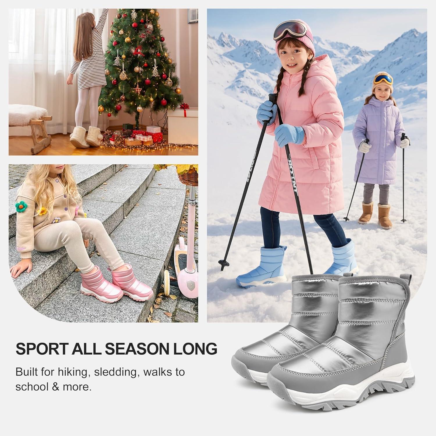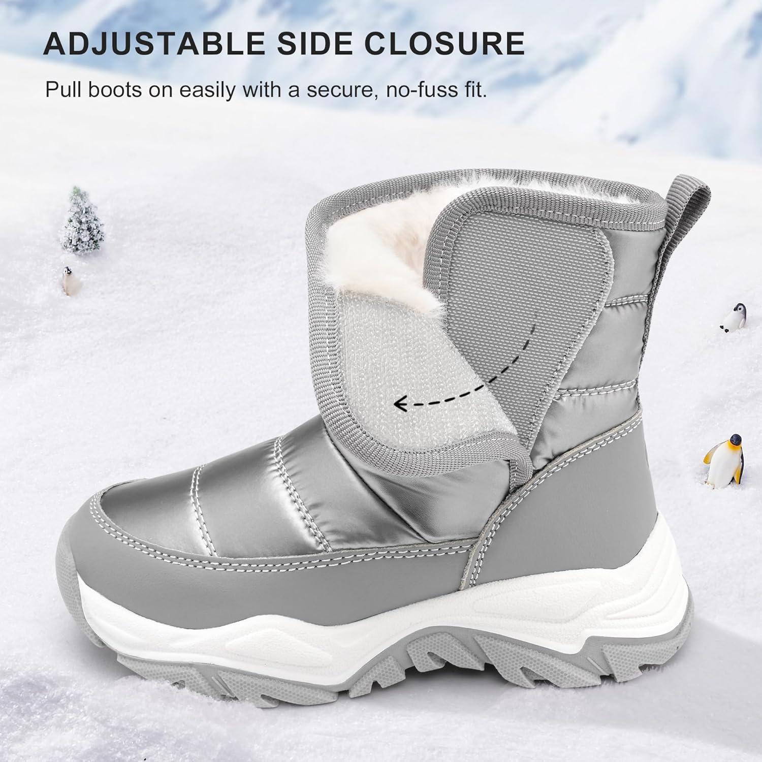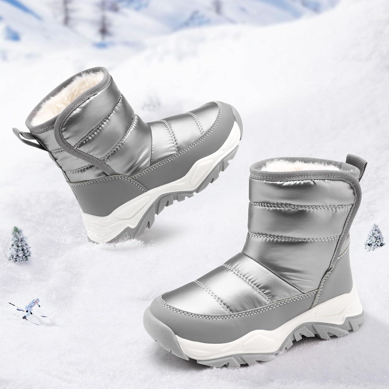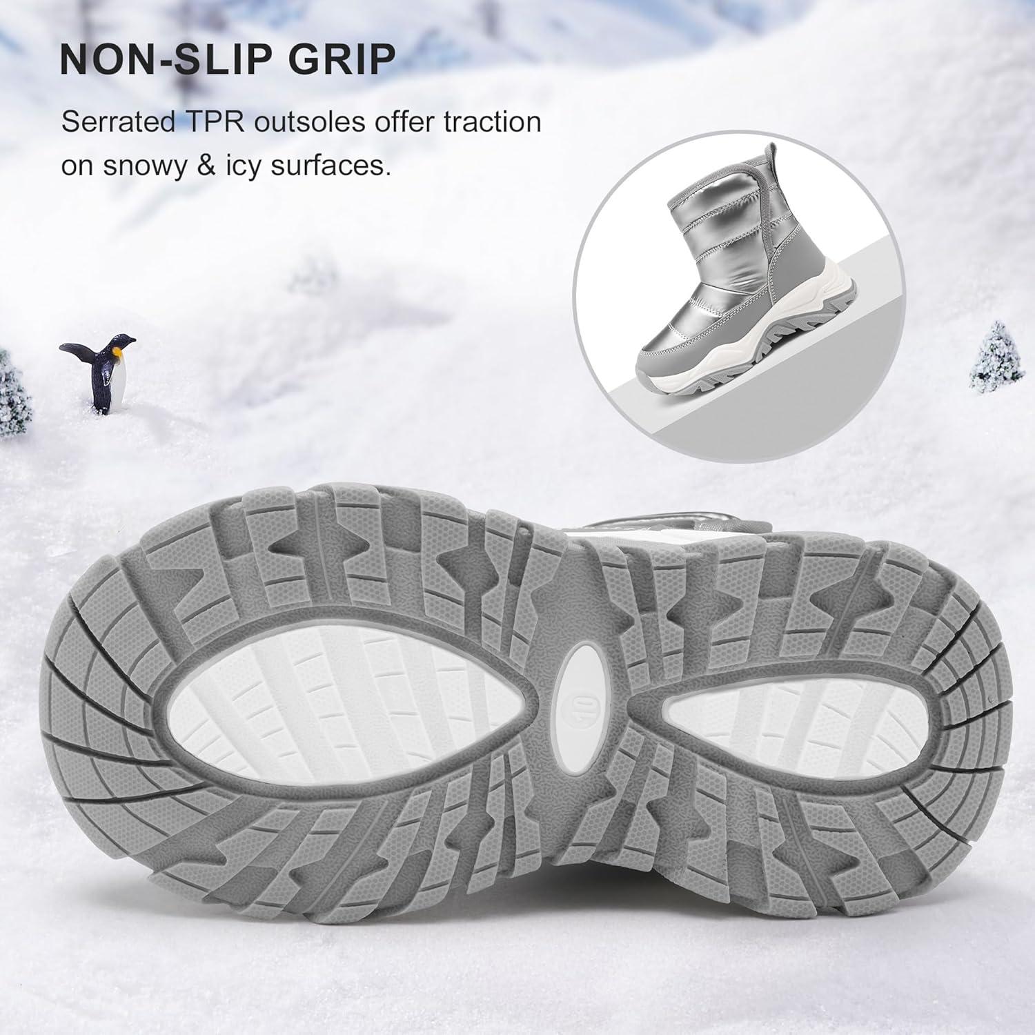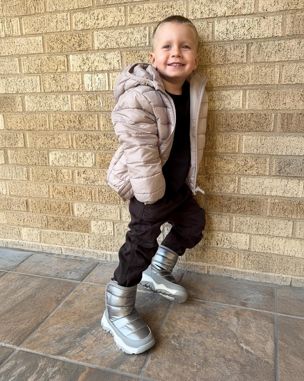 Stelle Toddler Snow Boots Boys Girls Winter Cold Weather Waterproof Non Slip Warm Shoes for Little Kids(Grey)