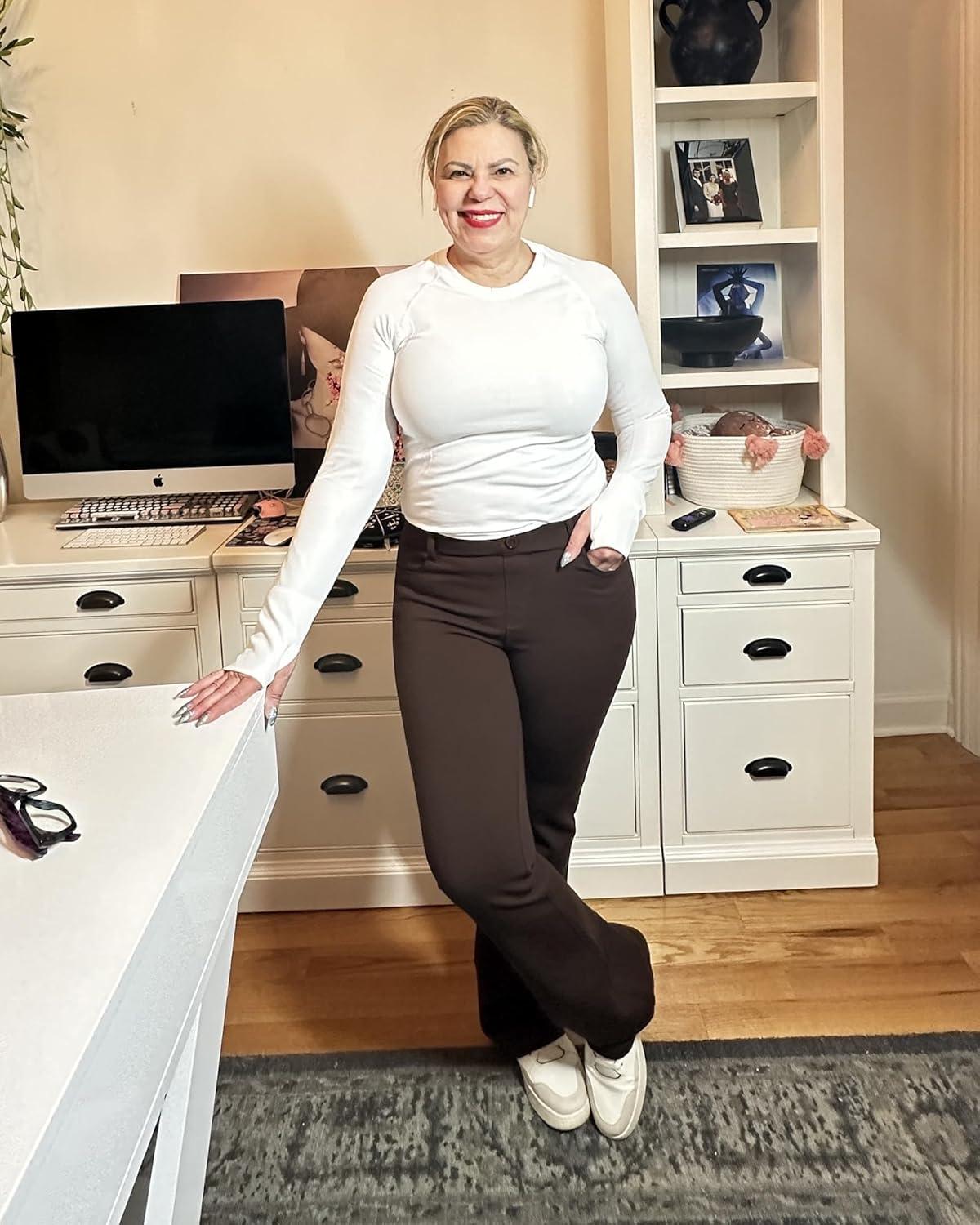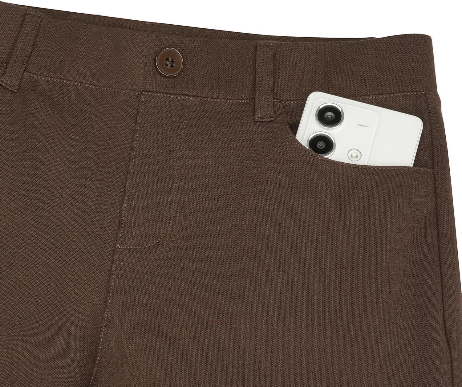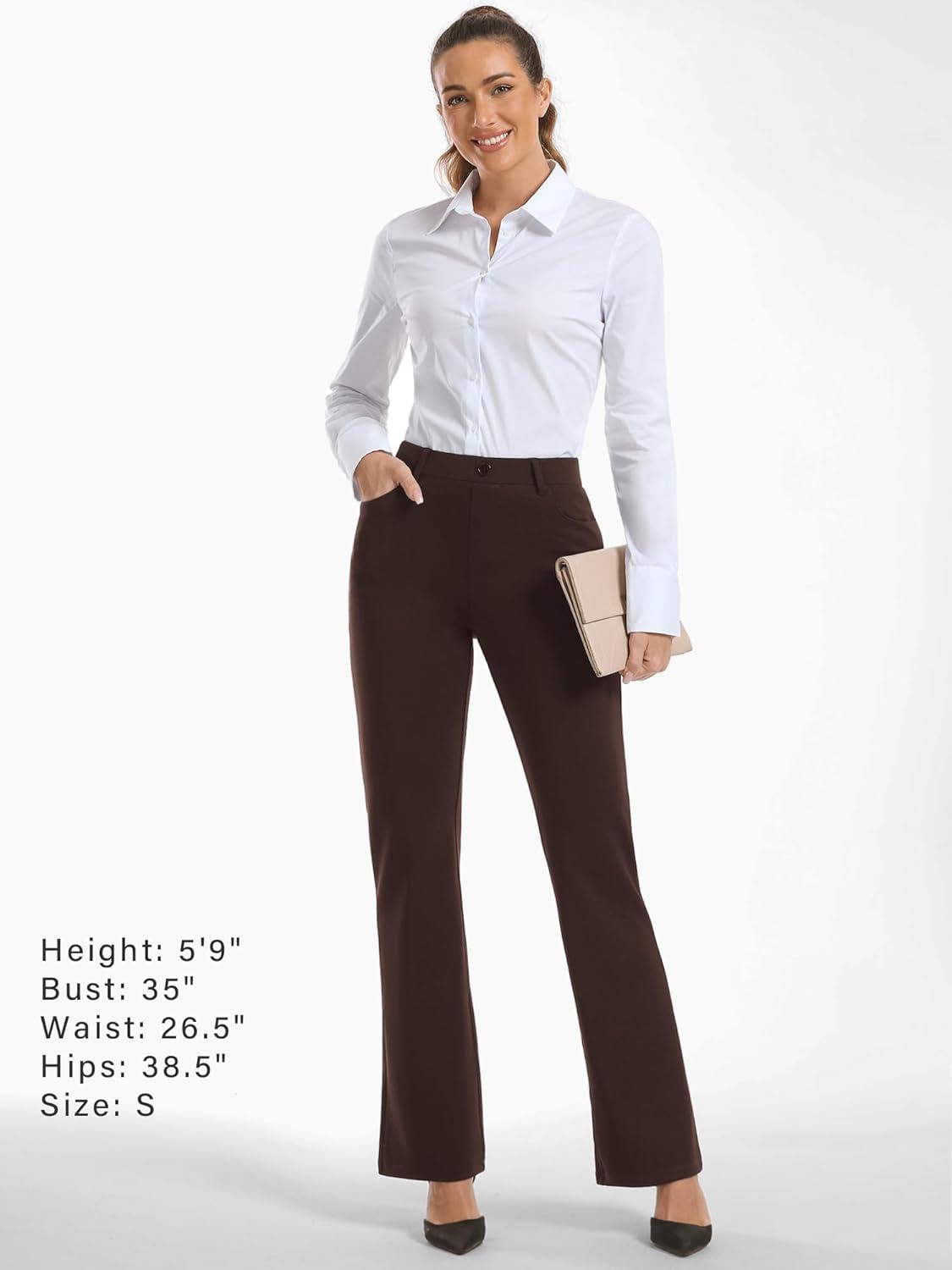 Stelle Women 28″/30″/ 32″ Bootcut Dress Pants Business Casual Work Pants with Pockets Pull On Regular Slacks for Office(Coffee)