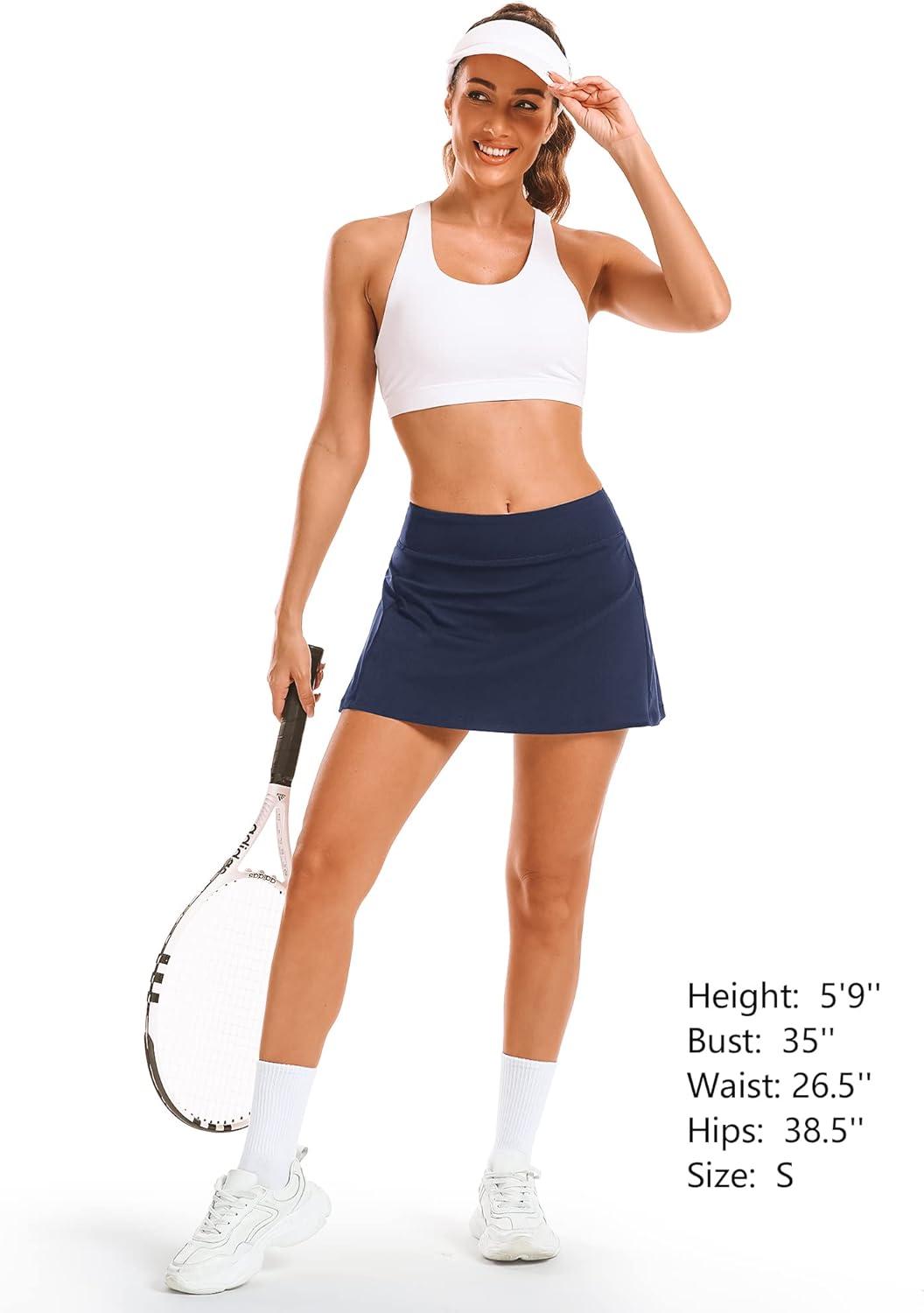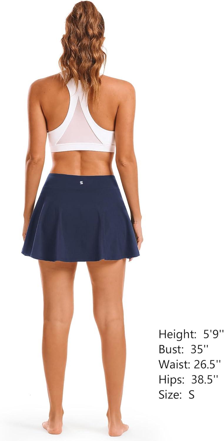 Stelle Women’s Tennis Golf Skirts High Waisted with Pockets Inner Shorts for Athletic Skorts Sports Running Pickleball(Navy)