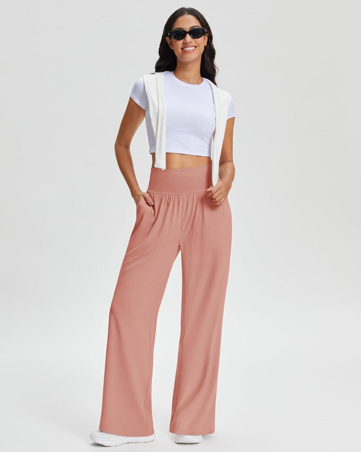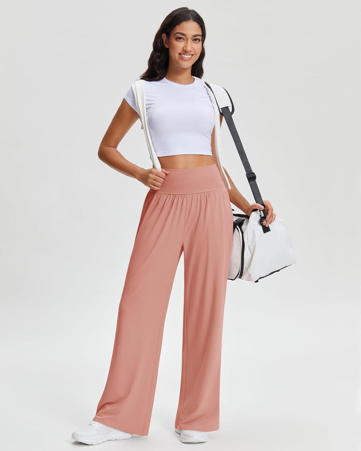 Stelle Women’s Wide Leg Yoga Pants Soft High Waisted Sweatpants Stretch Lounge Bottom with Pockets 28″ Inseam(Dusty Pink)